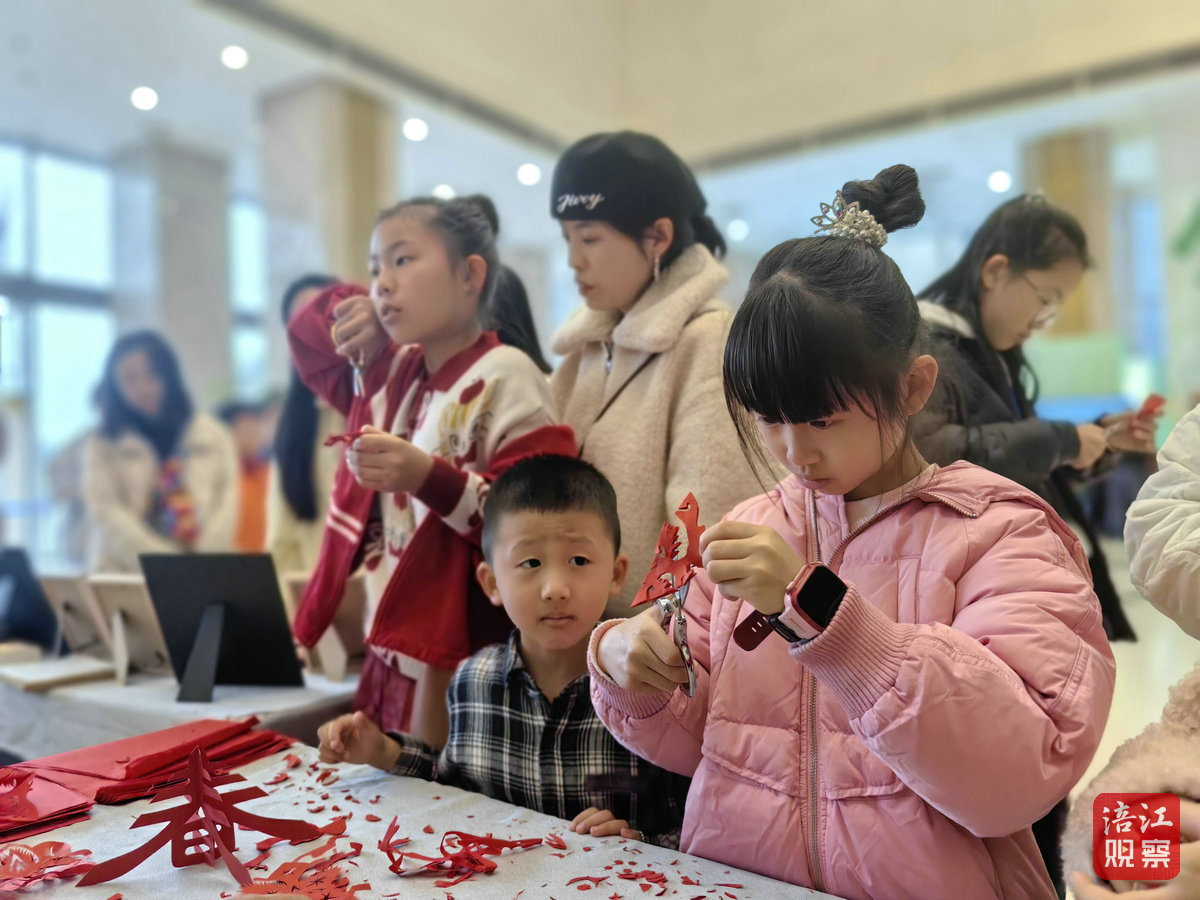 上午9时40分,绵阳市博物馆大门外市民排起长队。开馆后,大家有序入馆。游仙区五里路小学四年级的崔熙芮小朋友,一走进博物馆大厅,就被现场的剪纸体验吸引住了。在平武剪纸传承人谢成飞的指导下,她几分钟就完成了一件团花。