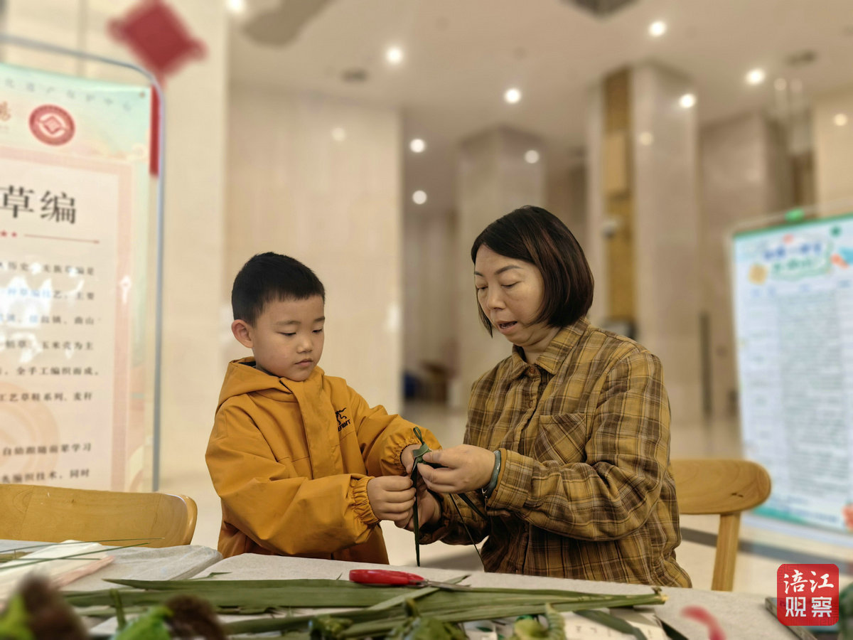 在羌族草编体验点,传承人江福蓉手把手教几位小朋友体验草编,看到一片棕叶经过折叠后变成可爱的蚂蚱,小朋友们脸上都乐开了花。