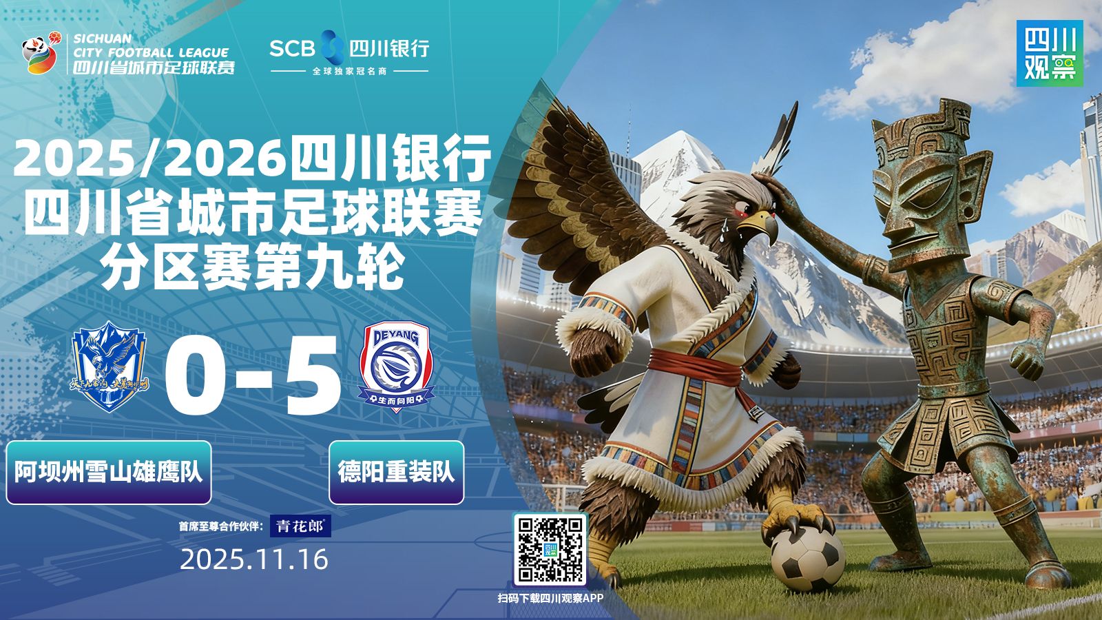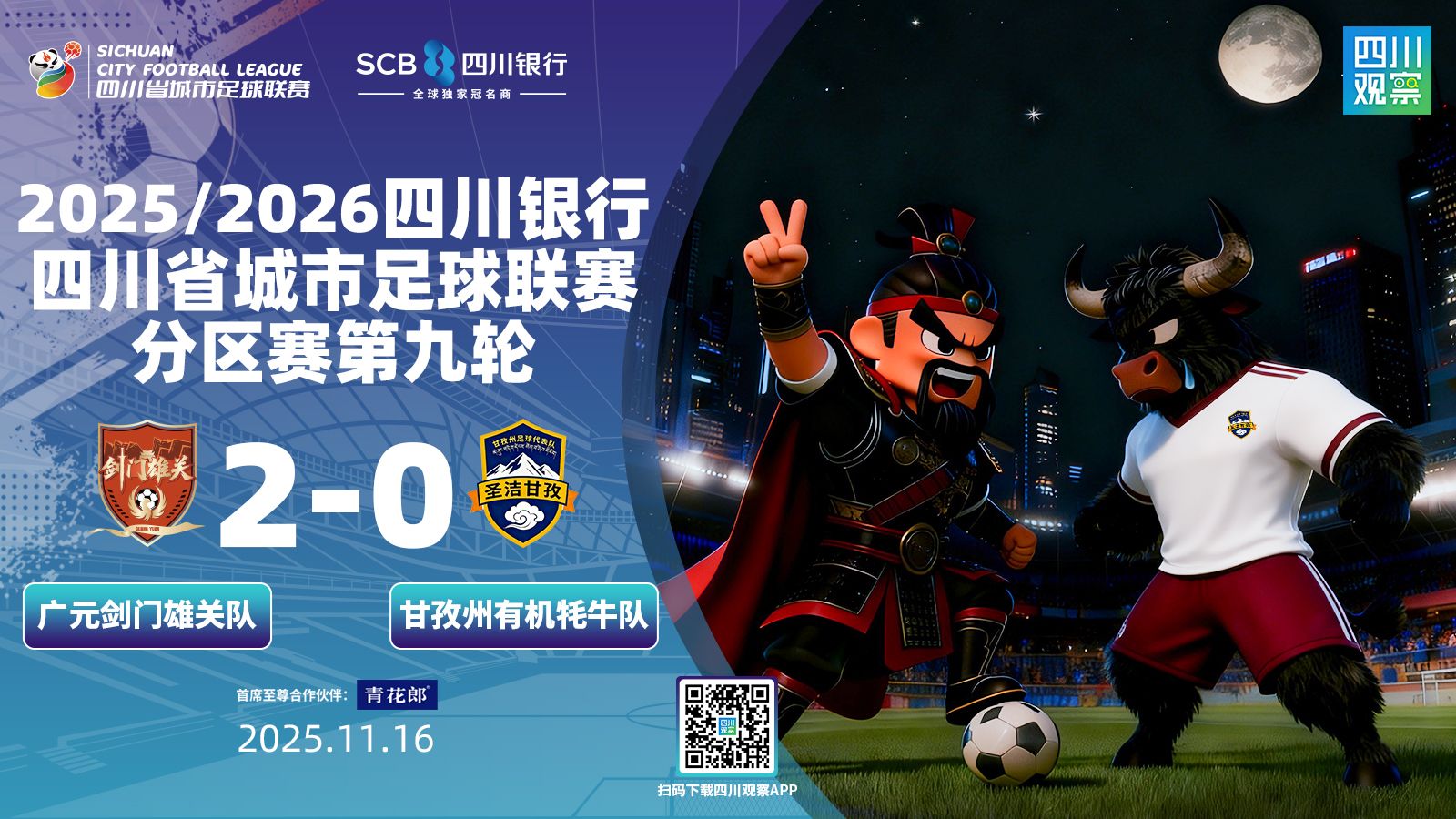 2025/2026 四川银行四川省城市足球联赛 11月16日战报来了! 泸州1:0宜宾 资阳3:4自贡 阿坝0:5德阳 广元2:0甘孜 泸州队1:0击败宜宾队,成功拿下本场强强对话的胜利。 资阳最后一场主场,7球大战!自贡队4∶3险胜资阳队。 德阳队猛攻,5:0客场大胜阿坝队,再胜一轮有望出线。 广元队主场2球取胜,甘孜无缘出线。 “川超”第九轮战罢 积分榜、射手榜更新(截至11月16日) ↓↓↓ (来源:四川观察)