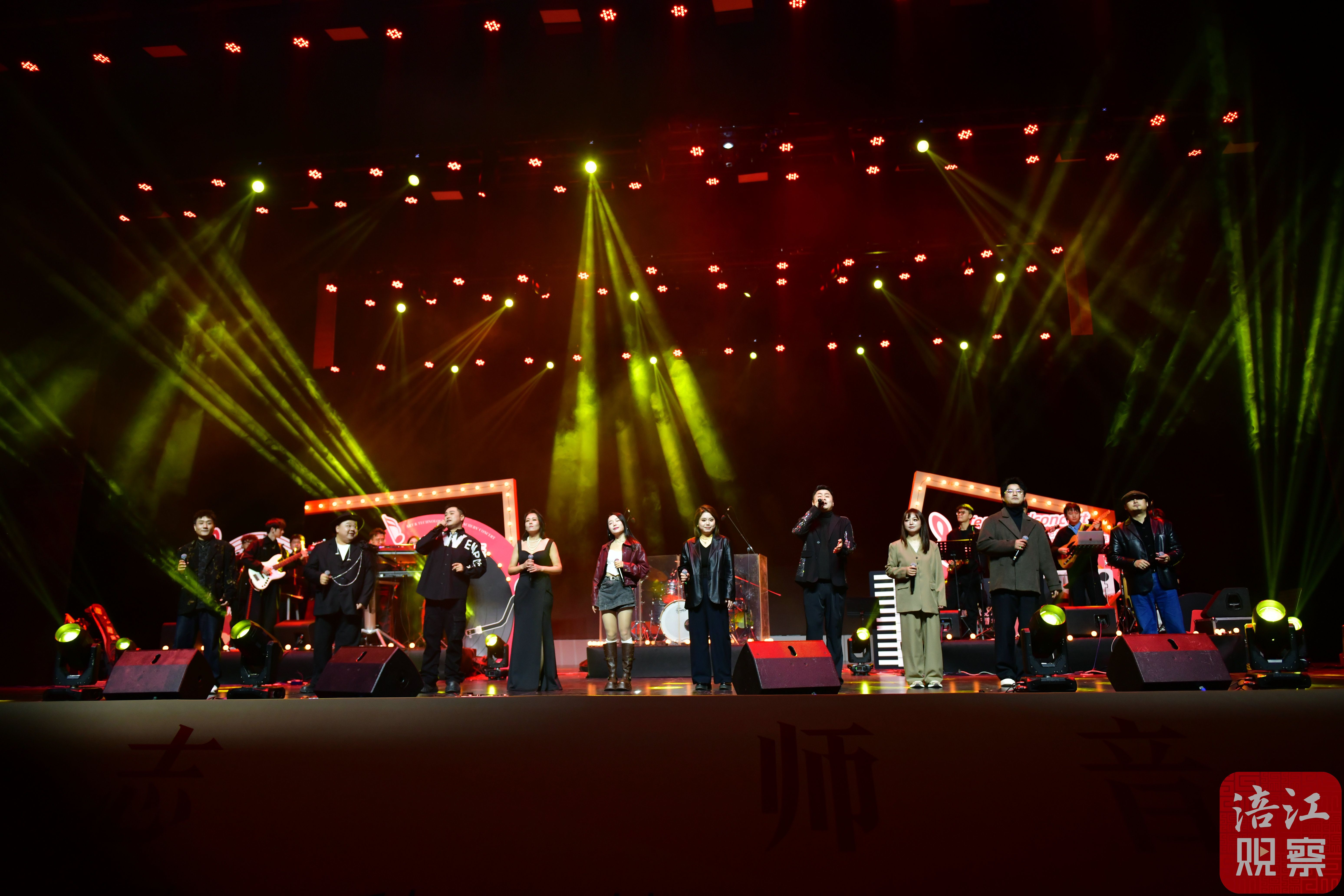 当晚7点,流行音乐教师乐队开场秀点燃音乐会序幕。此次音乐会分4个篇章,第一篇章用爵士、摇滚、Soul等4种不同的流行风格,致敬流行音乐的最初;第二篇章通过《危险》《诱惑的街》《她她她》《第三人称》4首经典作品,感受华语流行的故事;第三篇章《迟到》《爱是怀疑》《情人的眼泪+思念是一种病》《流沙》4首作品将多种流行风格赋予华语流行新生命;第四篇章《悟空传》《我爱你中国》2首作品让传统音符藏进流行音乐里,用年轻人的方式唱出对中华的热爱。