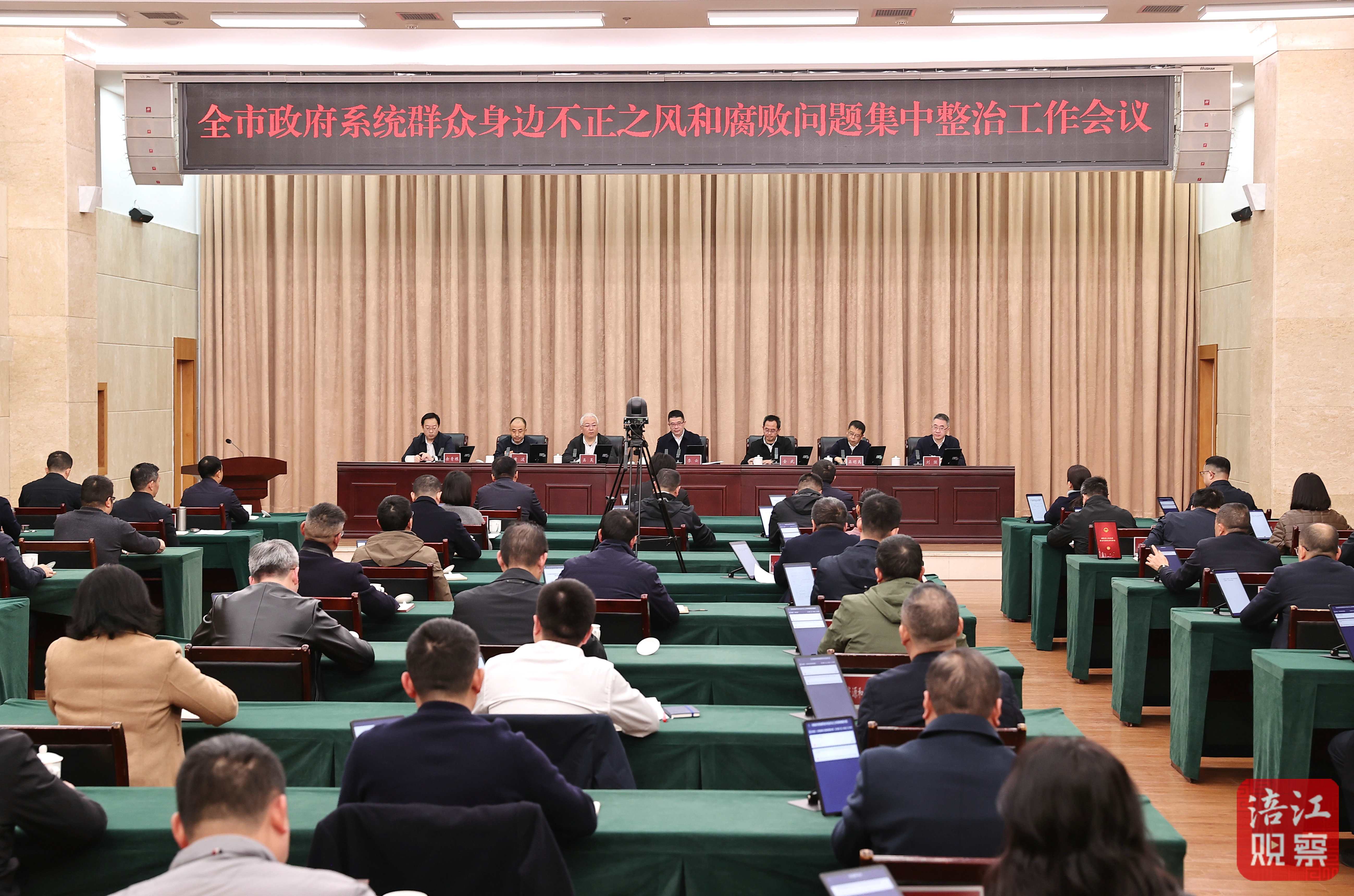 会议指出,今年以来,全市政府系统在市委坚强领导下,认真落实全面从严治党各项要求,坚持党风廉政建设和经济社会发展两手抓、两不误、两促进,风清气正、崇廉尚实的政治生态持续巩固。同时也要清醒看到,部分重点领域的不正之风和腐败问题仍然存在,需要久久为功、常抓不懈。全市政府系统要提高思想认识,切实增强做好政府系统廉政工作的政治自觉、思想自觉、行动自觉,把全面从严治党战略方针落实到政府各项工作和自身建设全过程各方面,坚定不移推进政府系统党风廉政建设,坚决打赢反腐败斗争攻坚战持久战,以实际行动坚定拥护“两个确立”、坚决做到“两个维护”,为全市经济社会高质量发展提供坚强保障。