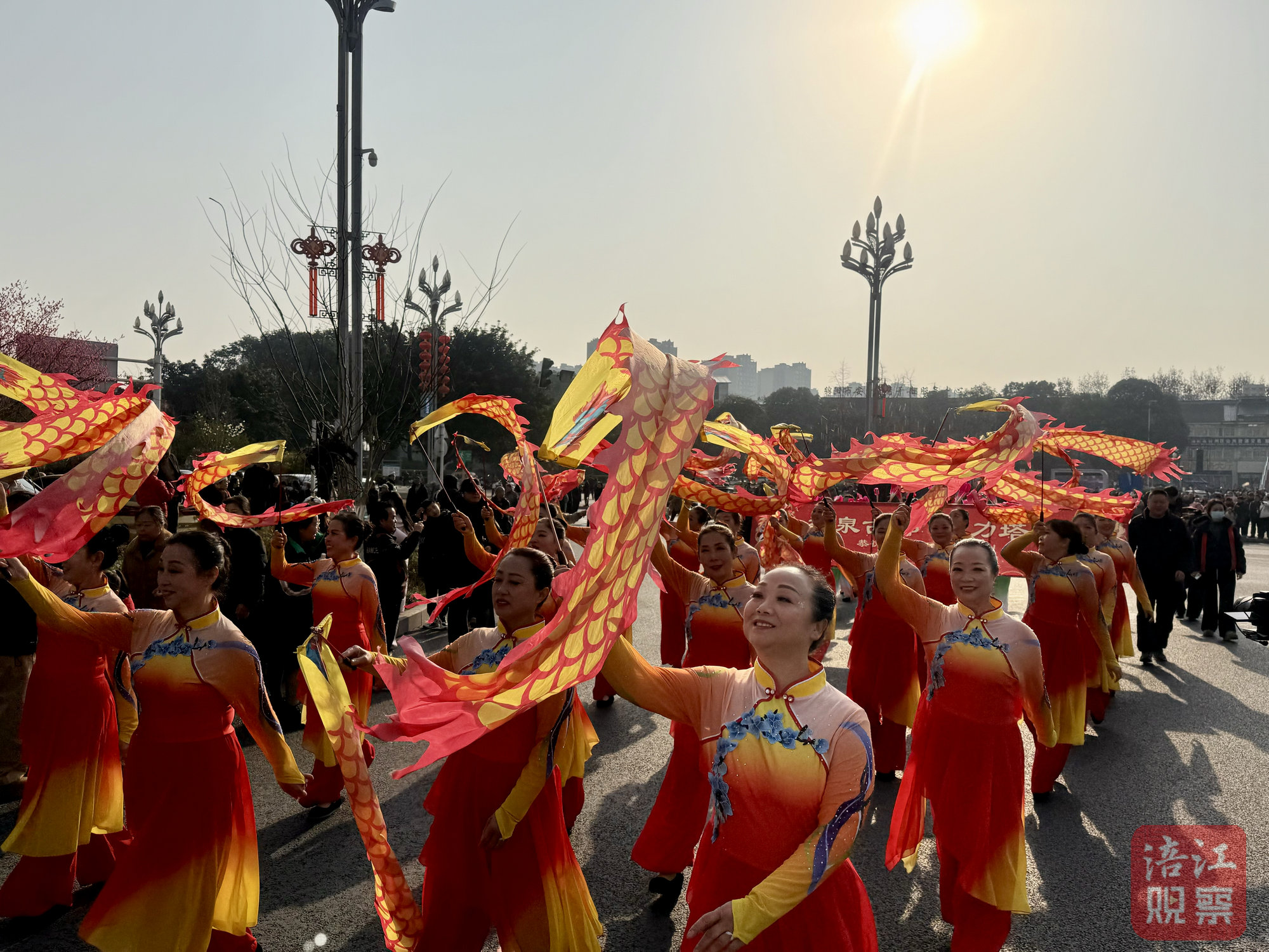 活动当天,安州区文化广场灯笼高挂,处处洋溢着浓浓的新春气息。上午9时许,伴随着激昂铿锵的锣鼓声,民俗巡游队伍正式出发。舞龙、扭秧歌、狮灯、采莲船、福禄寿送福……14支民俗队伍吸引众多群众驻足围观、喝彩不断,街道瞬间变成欢乐的海洋。