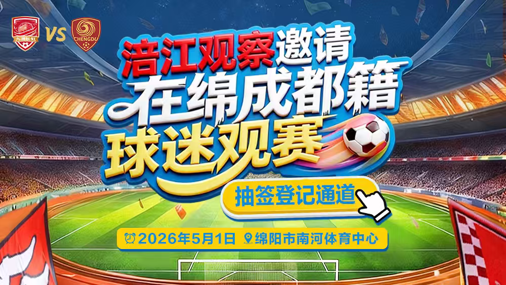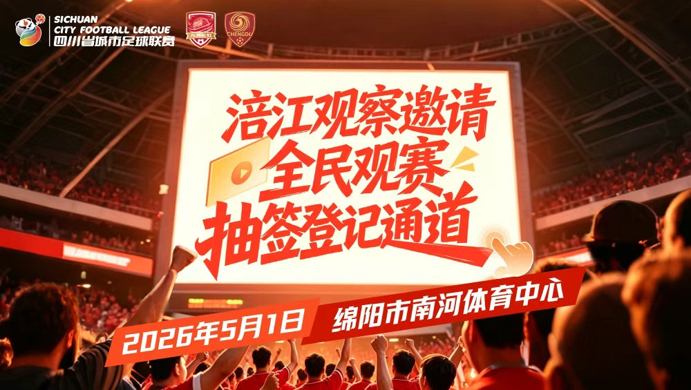 5月1日绵阳VS成都!200张免费门票,抽签登记通道开启→
